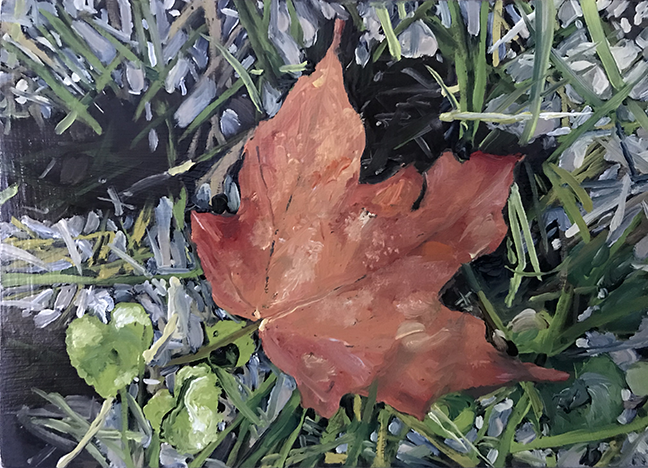 Oak Leaves in the Grass (NL-265) oil paint on canvas board; 19 x 12